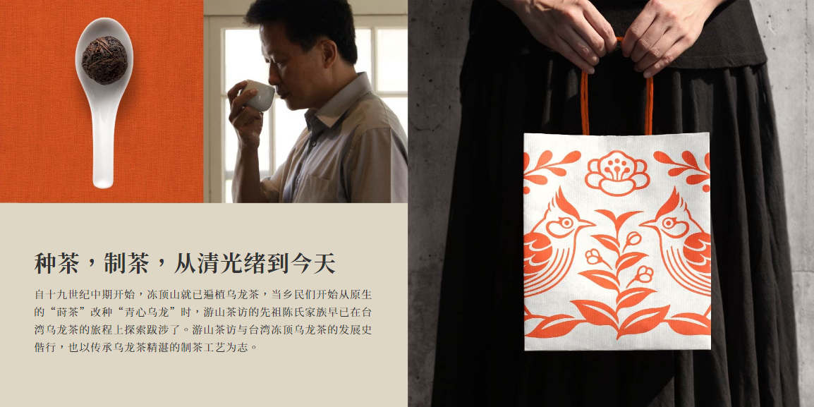 種茶,制茶,從清光緒到今天自十九世紀中期開始,凍頂山就已遍植烏龍茶,當鄉民們開始從原生的“蒔茶”改種“青心烏龍”時,游山茶訪的先祖陳氏家族早已在臺灣烏龍茶的旅程上探索跋涉了。游山茶訪與臺灣凍頂烏龍茶的發展史偕行,也以傳承烏龍茶精湛的制茶工藝為志。