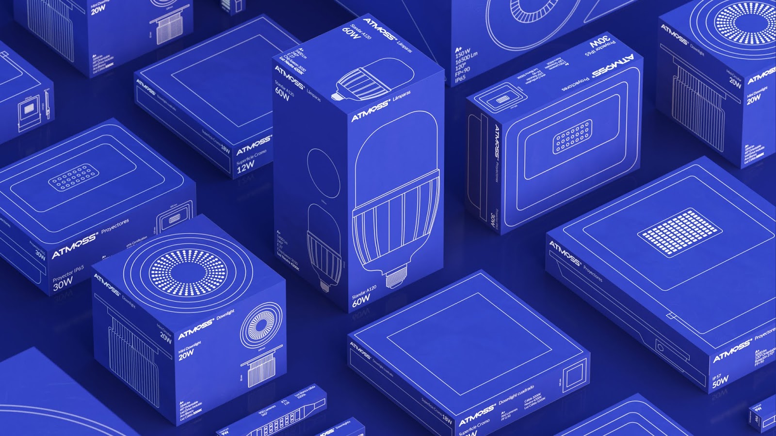 Atmoss是照明產品和電氣設備的偉大品牌。他們要求包裝設計公司幫助他們改變整個產品線的包裝。