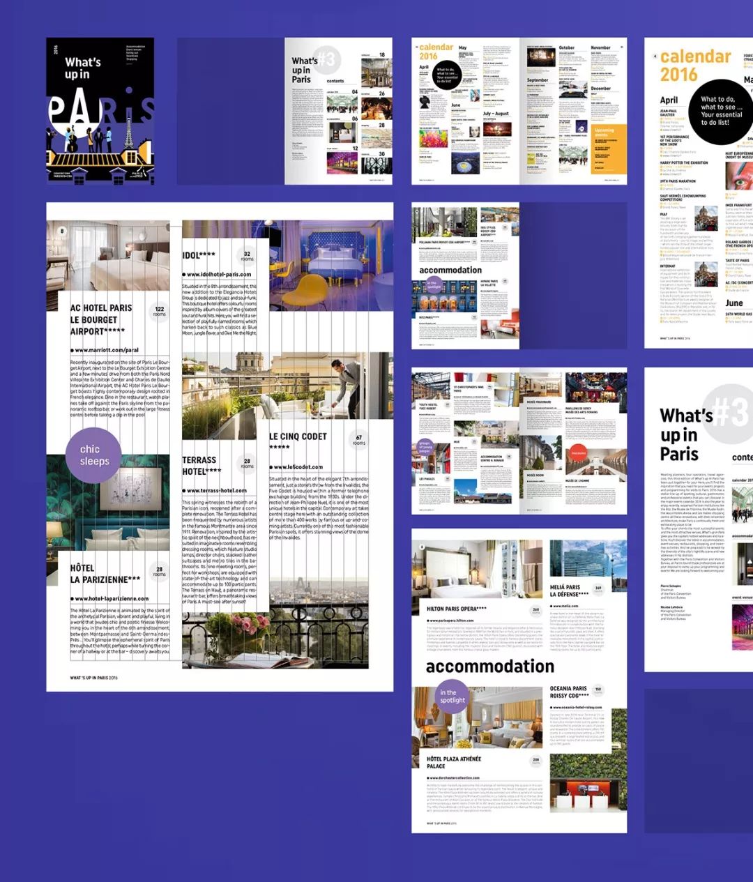 在巴黎的最新動態潮流雜志上,通過32頁介紹了巴黎酒店,活動場所,餐廳和購物方面的最新開業和裝修信息。 畫冊封面設計成了黑色,以展現巴黎是一個夜生活豐富的城市形象。
