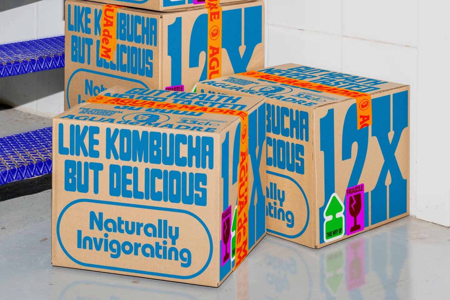 品牌升級(jí)設(shè)計(jì)主要有兩個(gè)目標(biāo)。首先,我們希望讓大家了解Agua de Madre背后俏皮美學(xué)的靈感來源,即“品味與尊重Madre精神的傳達(dá)”。通過將鮮艷的色彩與懷舊字體相結(jié)合,我們能夠巧妙地暗示出飲料的活潑口感。同時(shí),引入坦率重疊的貼紙?jiān)O(shè)計(jì),借鑒兒童貼紙書的形式(以及人們?cè)谑褂觅N紙書時(shí)所獲得的快樂),進(jìn)一步強(qiáng)化了品牌的趣味性。雖然水開菲爾的含糖量低且味道細(xì)膩,但它本身是一種具有蘇打水風(fēng)格的飲品。為了突出這一點(diǎn),設(shè)計(jì)師特意采用了熟悉而俏皮的字體以及明亮、充滿活力的色彩,使Agua de Madre在眾多酒精和康普茶類競爭產(chǎn)品中脫穎而出,彰顯其獨(dú)特的品牌魅力。