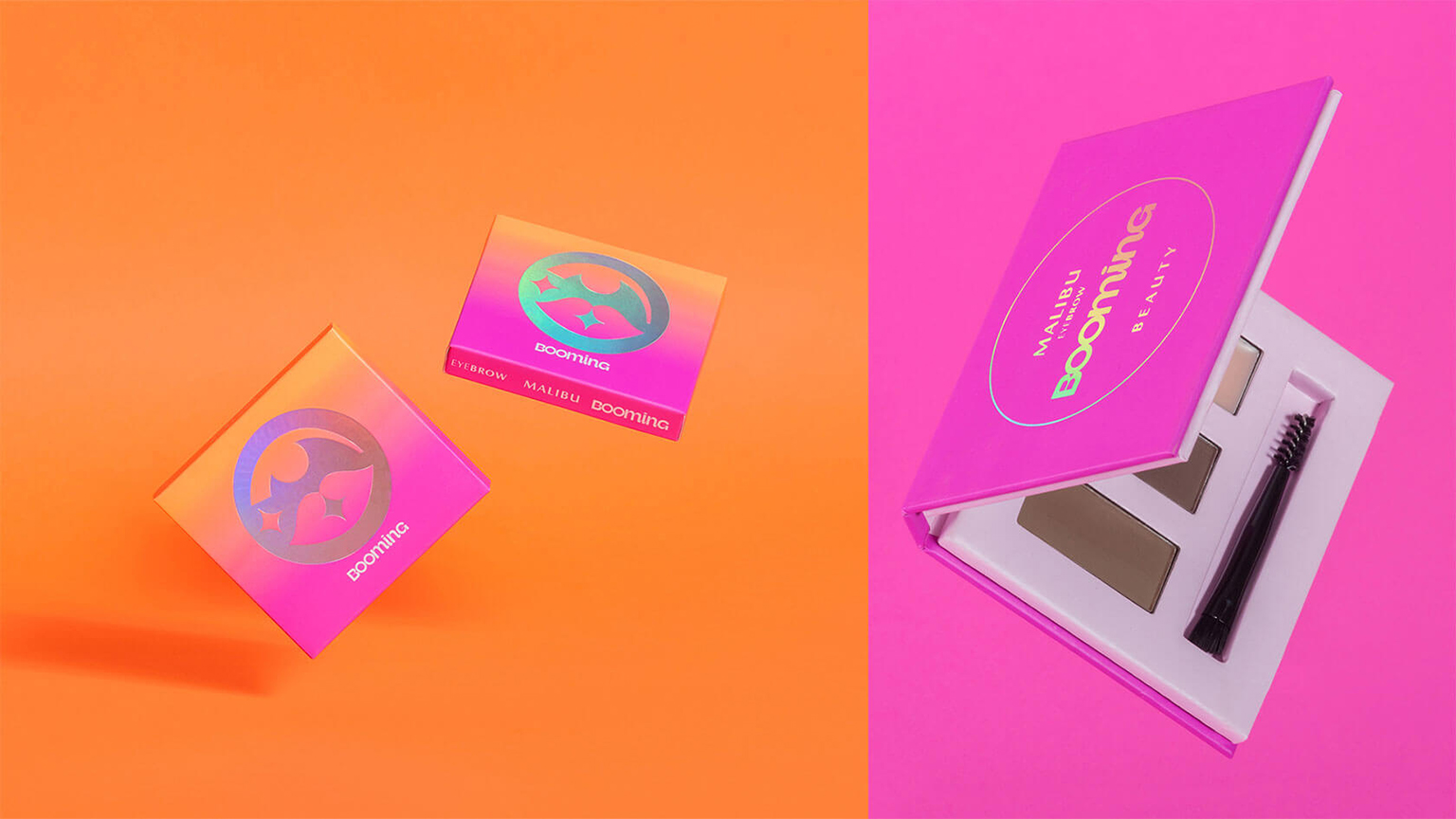 在包裝工藝創(chuàng)新方面,設(shè)計師特別采用虹彩覆膜與閃耀箔片燙印技術(shù),使容器表面隨光線流轉(zhuǎn)呈現(xiàn)動態(tài)光效,賦予產(chǎn)品極具辨識度的視覺張力。這些匠心獨運的設(shè)計語言不僅構(gòu)建了獨特的視覺層次,更從美學(xué)維度強(qiáng)化了Booming品牌的核心主張——鼓勵消費者突破傳統(tǒng)審美邊界,在色彩游戲中探索美的無限可能。