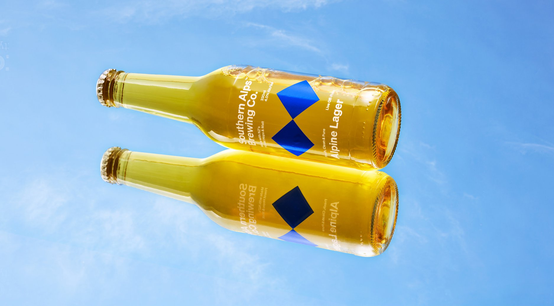 設(shè)計(jì)理念以紐西蘭南島滑雪道和冰川山脈的形象作為啤酒品牌視覺(jué)設(shè)計(jì),青藍(lán)為品牌的主色調(diào),結(jié)合白色漸變和反射,創(chuàng)造出抽象的山脈和冰川景觀(guān)。 瓶身以更簡(jiǎn)約的標(biāo)志性形式使用,強(qiáng)調(diào)了清爽的優(yōu)質(zhì)貯藏啤酒,彰顯冒險(xiǎn)的精神。