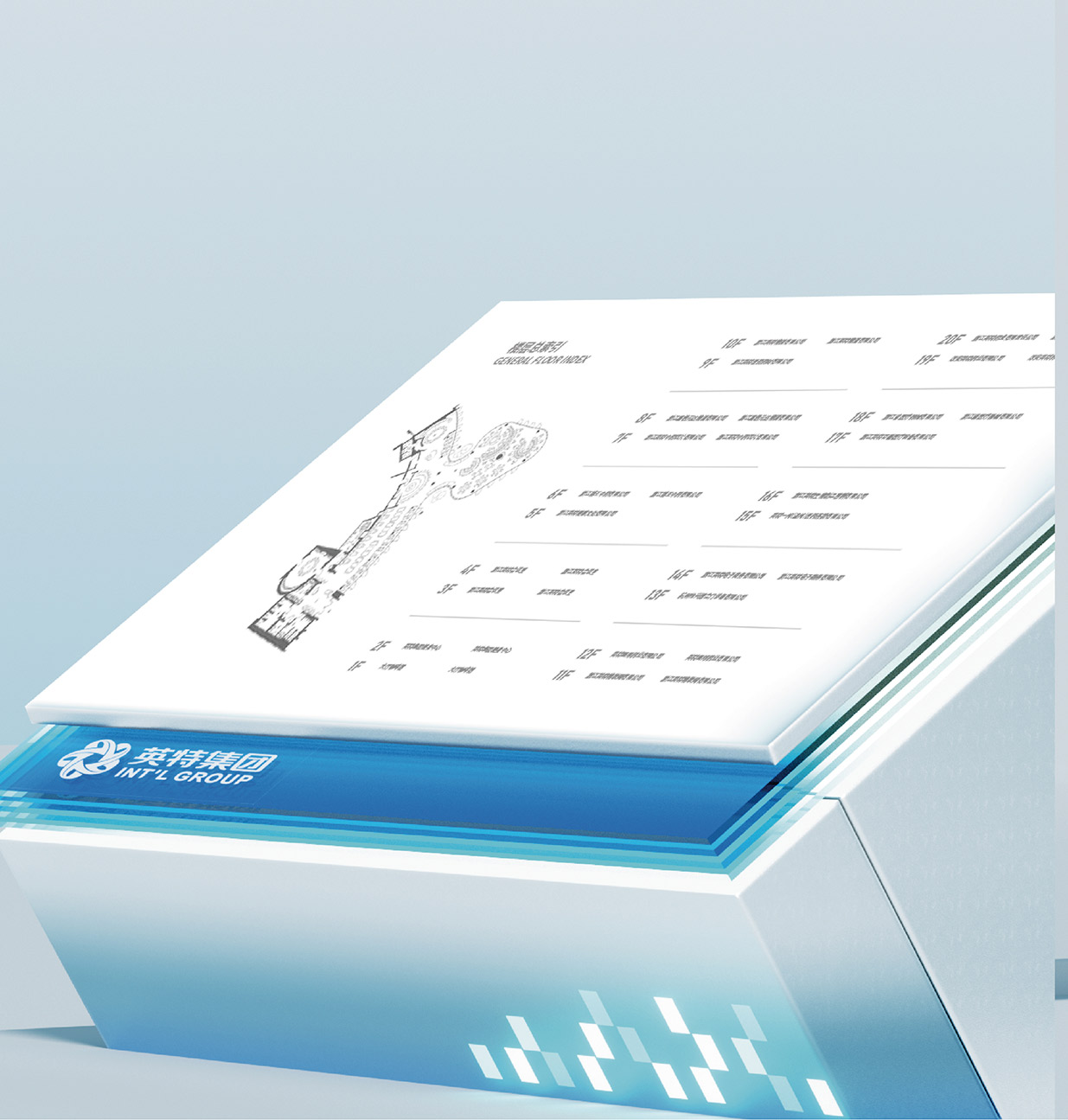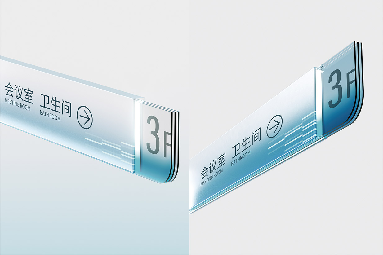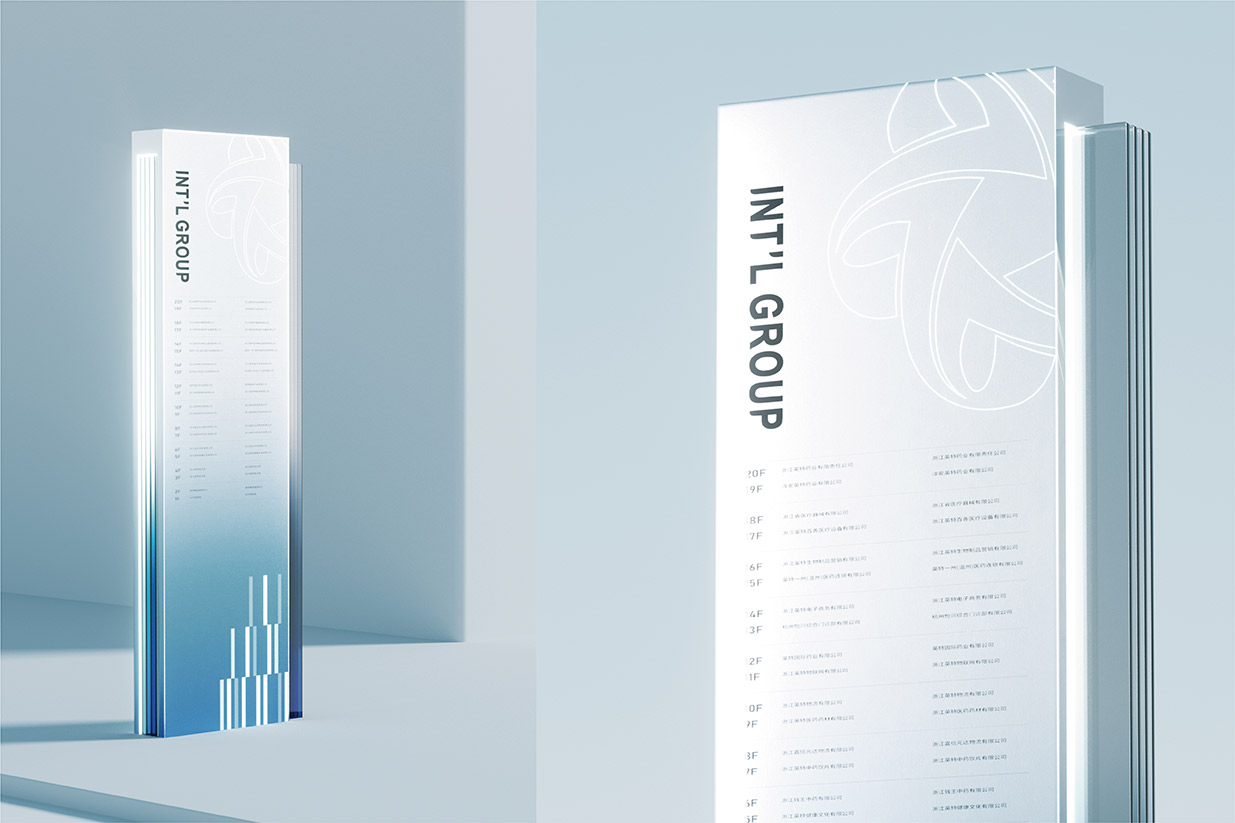 選擇藍(lán)色作為品牌主色調(diào),藍(lán)色在色彩心理學(xué)中常常與智慧、科技、冷靜以及可靠性等特質(zhì)緊密相連。在醫(yī)藥行業(yè),這些特質(zhì)尤為重要,因?yàn)樗鼈兡軌騻鬟f出英特集團(tuán)在醫(yī)藥科技研發(fā)、創(chuàng)新應(yīng)用以及精準(zhǔn)服務(wù)方面的專業(yè)形象。同時(shí),縱向線段的設(shè)計(jì)元素巧妙地融入其中,這些線條象征著數(shù)據(jù)傳輸、信息流動(dòng)以及科技發(fā)展的方向性。它們以簡(jiǎn)潔而富有節(jié)奏感的排列方式,展現(xiàn)出英特集團(tuán)在醫(yī)藥供應(yīng)鏈管理、藥品信息追溯以及數(shù)字化醫(yī)療服務(wù)等方面所具備的高效、精準(zhǔn)的科技實(shí)力,讓客戶直觀地感受到企業(yè)與前沿科技緊密相連的品牌形象。大量使用玻璃材質(zhì)是本次品牌形象升級(jí)的另一大亮點(diǎn)。玻璃以其透明、光滑、質(zhì)感高級(jí)的特性,完美地詮釋了現(xiàn)代感。
