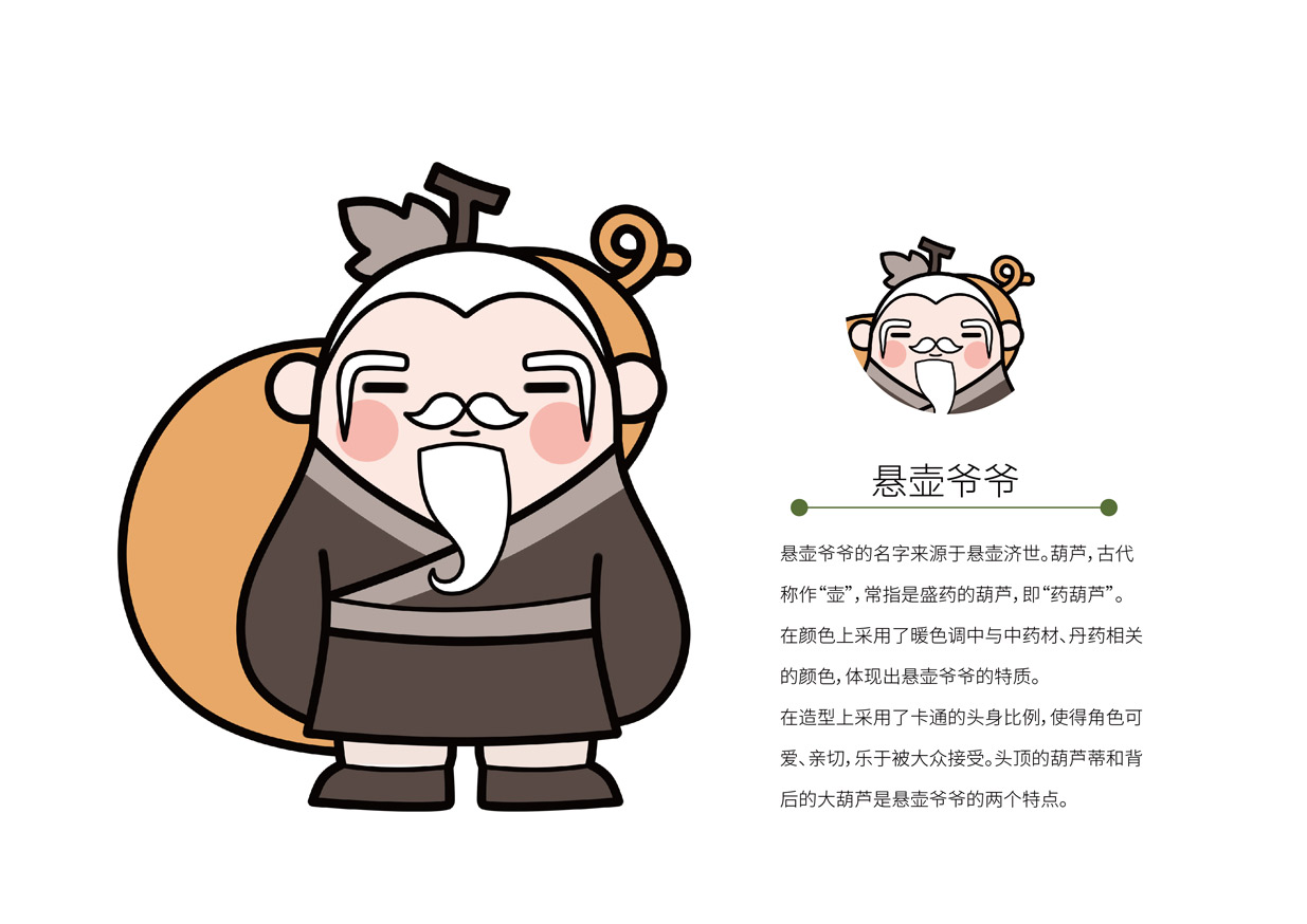 而吉祥物設計則以老中醫(yī)為原型,童顏鶴發(fā),精神奕奕,猶如老頑童般惹人喜愛,符合時代審美,活化國企形象,體現(xiàn)了老中醫(yī)的新時代特征。