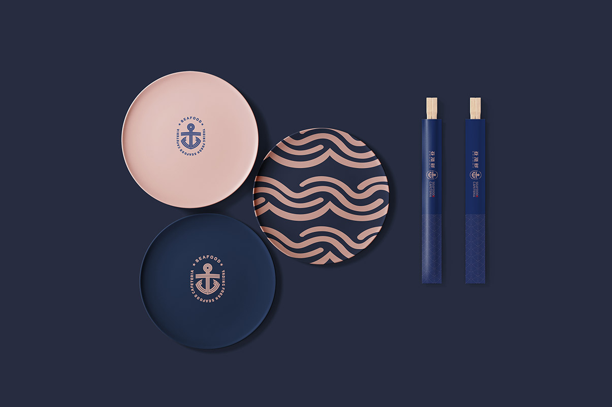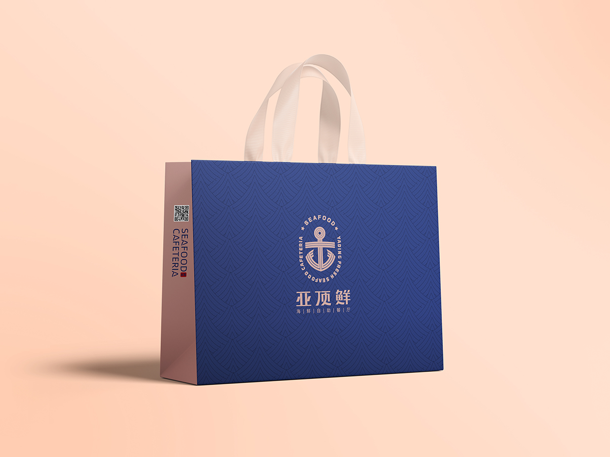 Introduction:亞頂鮮海鮮自助餐廳的品牌設(shè)計,以“海洋中的搬運工”海洋風(fēng)格為主,將船錨作為核心視覺符號,品牌設(shè)計的色彩搭配以深藍(lán)為主,古銅金為輔,氣質(zhì)典雅而高貴。簡潔而直接地展現(xiàn)了餐廳的獨特品味與優(yōu)勢。