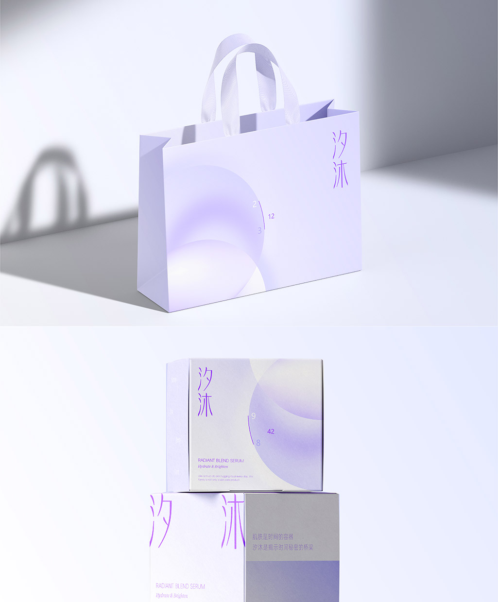 “汐”代表潮汐,是自然循環(huán)不息的象征;“沐”代表沐浴、滋養(yǎng),是呵護(hù)與新生的過程。品牌如同溫和的潮汐,以循環(huán)往復(fù)的節(jié)律,沐浴并滋養(yǎng)肌膚這個(gè)承載著時(shí)間印記的“容器”。我們并不試圖對(duì)抗時(shí)間,而是通過揭示其內(nèi)在的循環(huán)、生長(zhǎng)與變遷的奧秘,幫助肌膚達(dá)到一種從容、健康、充滿生命力的狀態(tài)。包裝設(shè)計(jì)即是這座“橋梁”的視覺化身。