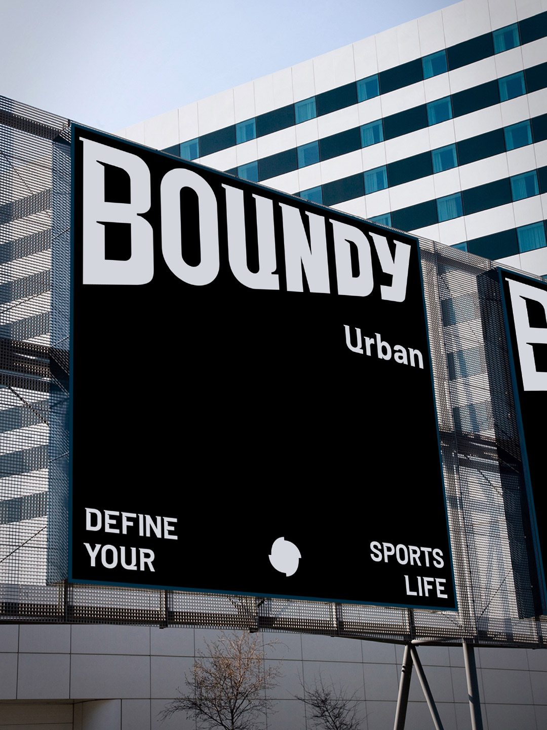 品牌標志設計核心符號:以品牌名稱“BOUNDY”為主體,通過厚重字體與透視結構強化視覺沖擊力。字體棱角分明,傾斜的透視造型體現動態感與力量延伸感。